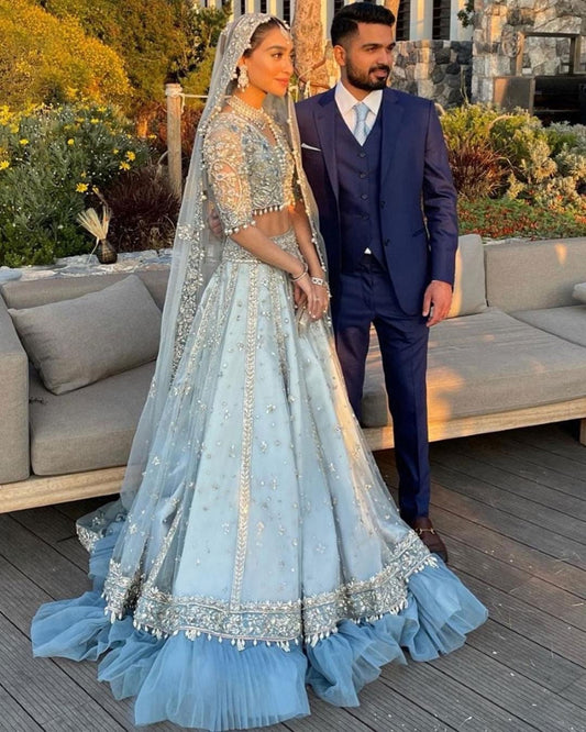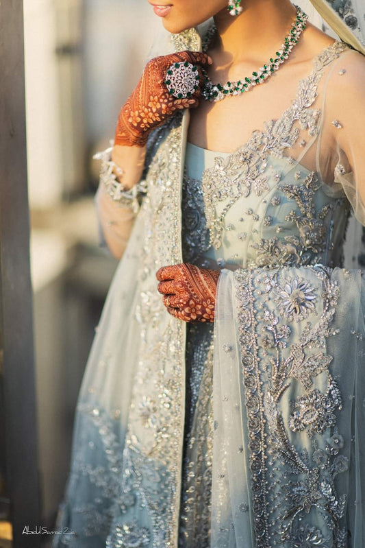 Silver Lehenga Choli For Pakistani Bridal Wear